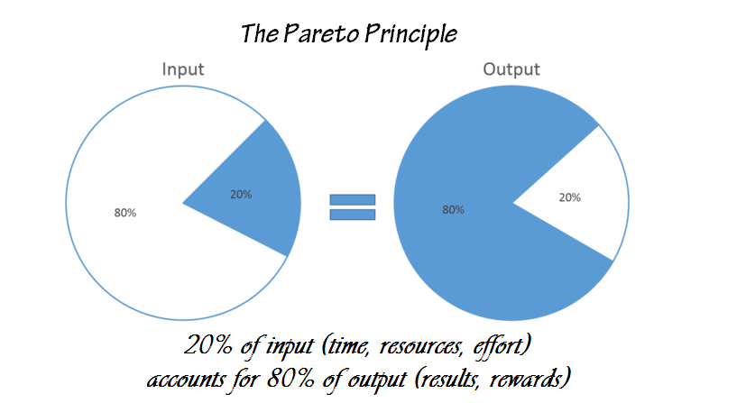 For those not familiar with this principle, it permeates pretty much every aspect of human endeavour. For example, research has show that 20% of sales people bring in 80% of orders; of the life cycle cost of equipment, 20% covers ownership and 80% covers operation.